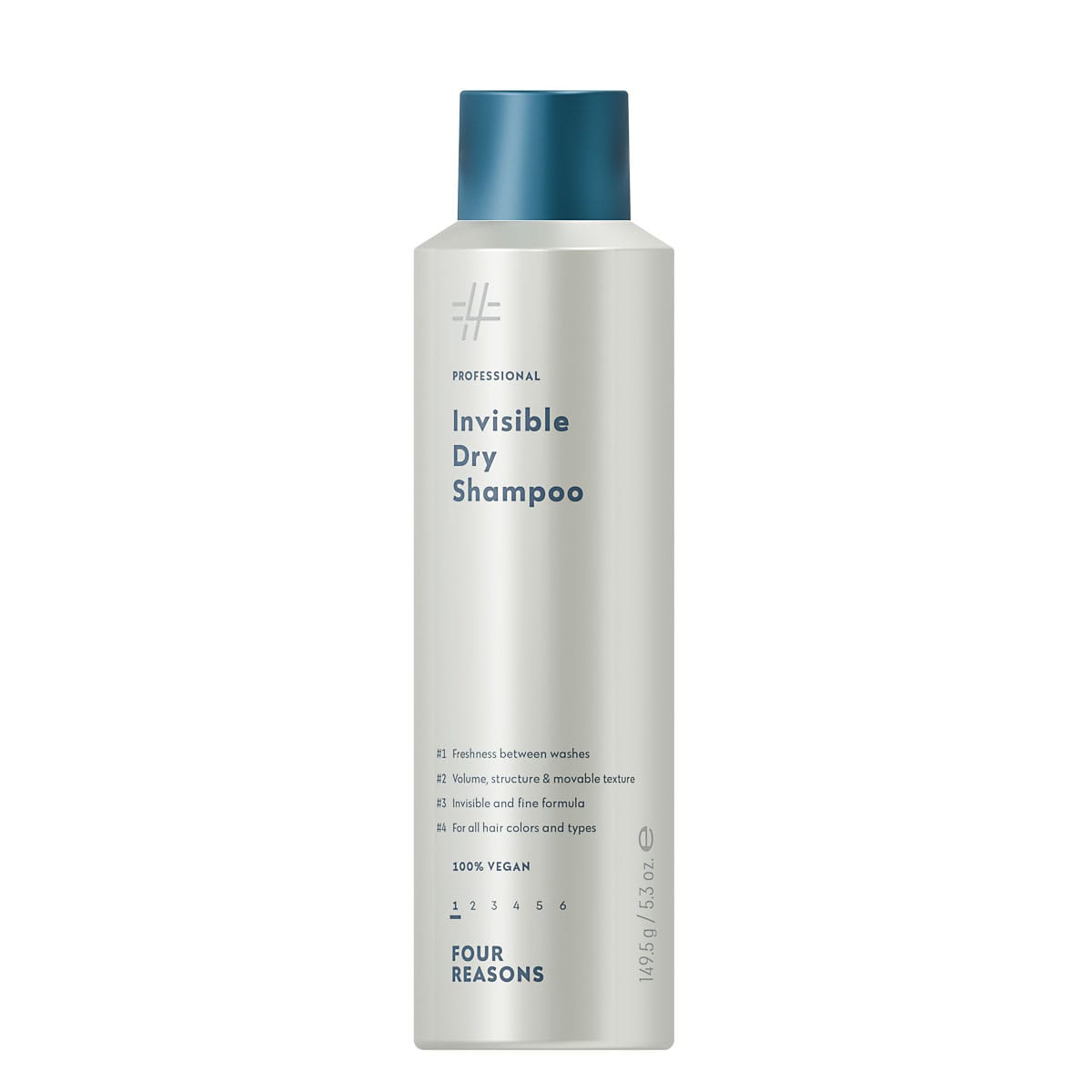 Four Reasons Professional Invisible Dry Shampoo raikastaa hiusten tuntua ja ulkonäköä, täydellinen kiireisiin aamuihin! Parhaista raaka-aineista luotu ammattilaislaatuinen tuote jonka koostumus on vegaaninen ja pakkaus kierrätettävä.